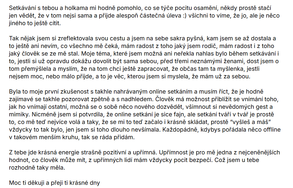 Malá, intimní skupina žen – bezpečný prostor pro sdílení