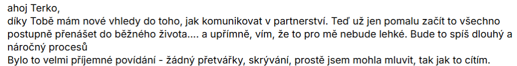 Ale některé věci se nezmění tím, že je pochopíme – ale až tím, že o nich začneme mluvit a začneme dělat příslušné akční kroky, které povedou ke změně toho, co už nám neslouží.